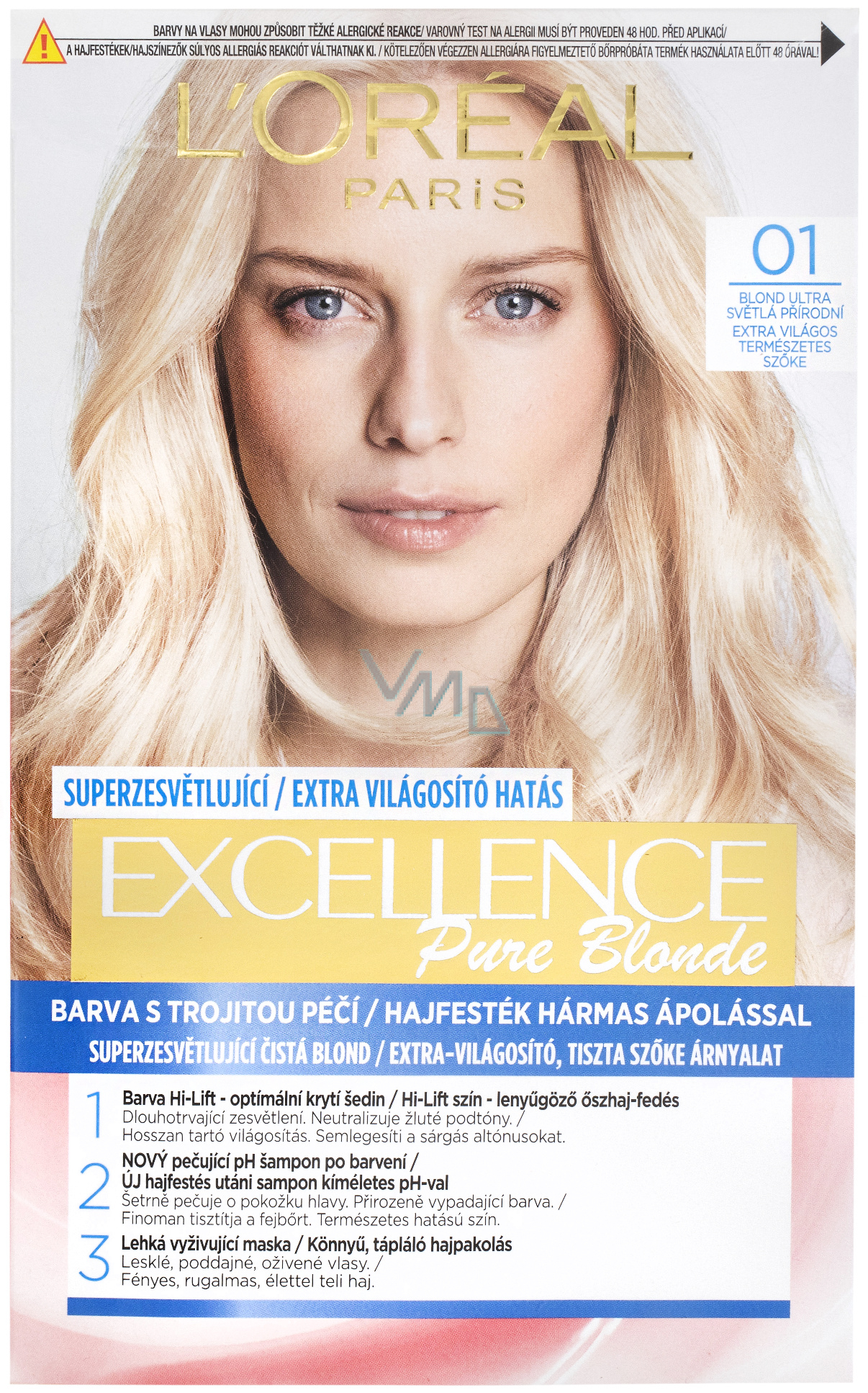 Elegancka farba ochronna Excellence Creme od L'Oréal Paris pokryje aż 100 procent siwych włosów. Możesz dzięki niej osiągnąć radykalną zmianę twojego naturalnego koloru i uzyskać perfekcyjny efekt o trwałości permanentnej. Twoje włosy rozjaśnią się o 2 do 3 tonów. Dzięki superrozjaśniającym odcieniom osiągniesz rozjaśnienie aż o 5 tonów. Czas działania wynosi tylko 30 minut.