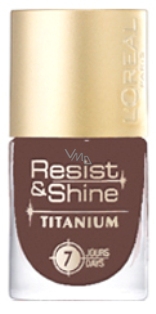 Resist & Shine Titanium 305 Marron Glacé, to je ultra-lesklá barva, neporušená během 7 dnů. Barva odolává nárazům, dokonce i na konečcích nehtů, neolupuje se!