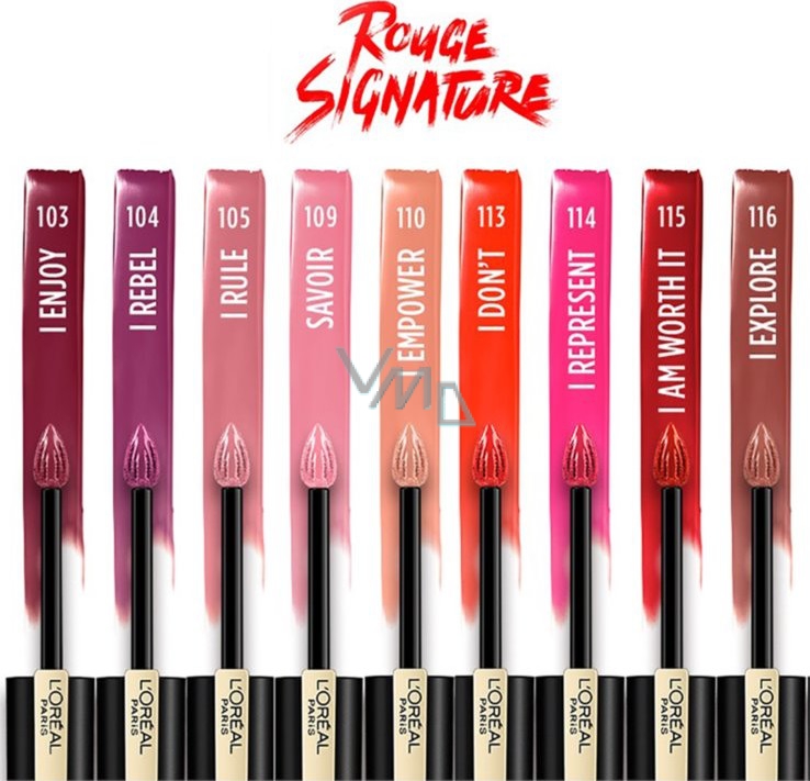 Podtrhněte svou osobnost se rtěnkou Loréal Paris Rouge Signature. Tato matná tekutá rtěnka zanechá na vašich rtech ultra tenký nezatěžující film, který se postará o pocit nahých, ale zároveň nalíčených rtů. Výsledkem je intenzivní odstín s dlouhotrvajícím efektem. Nesmazatelná rtěnka zahalí vaše rty do intenzivní, dlouhotrvající barvy plné pigmentů a zanechá na nich ultra tenký film, díky složení na bázi vody a oleje. Vaše rty tak mohou svobodně dýchat a vy můžete udělat dojem na první pohled. Méně je více.
