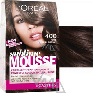 Sublime Mousse 400 ryzí tmavá hnědá je dlouhotrvající pěnová barva, která kryje šedivé vlasy a zároveň zachovává přirozený vzhled barvy Vašich vlasů. Její tajemství? Síla čisté barvy obsažené ve vzdušné pěně.