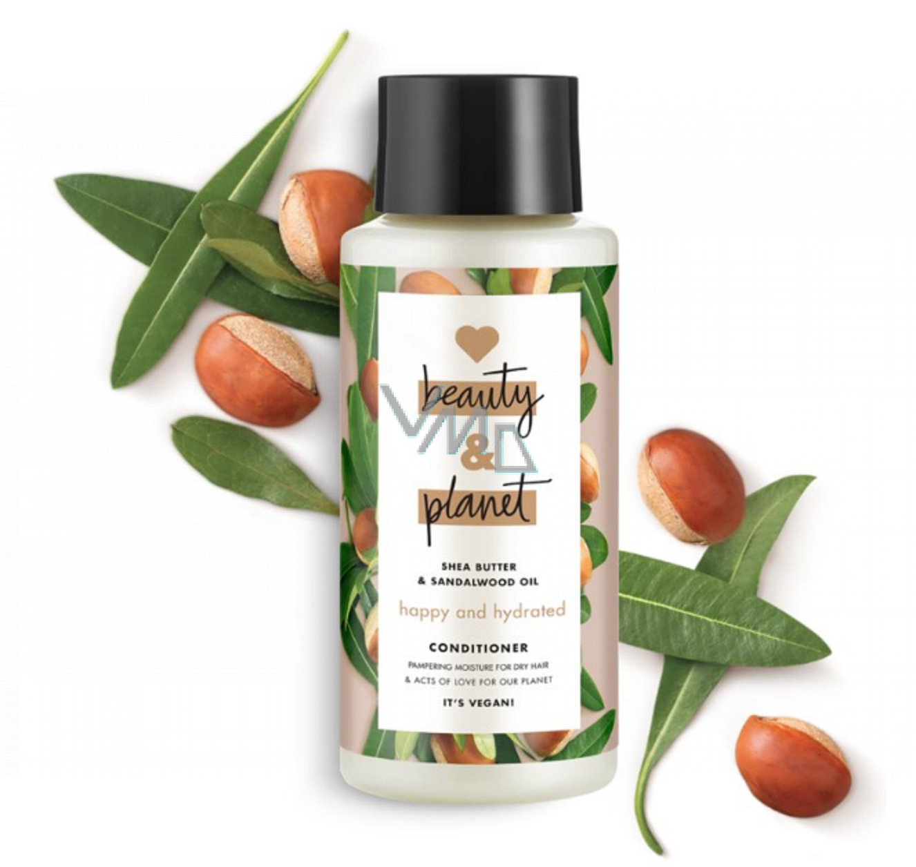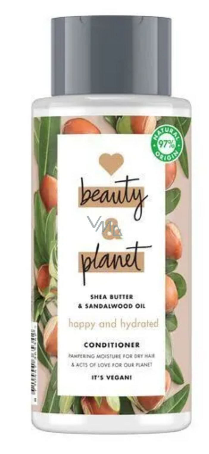 Hydratační kondicionér s bambuckým máslem a australským santalovým dřevem Happy & Hydrated zvlhčuje, hydratuje a chrání vlasy. Je vhodný pro normální a kudrnaté vlasy. Neobsahuje silikony a je vhodný pro vegany. Je vyroben z organických přísad, neobsahuje parabeny a barviva a jeho obal je 100 % recyklovatelný.