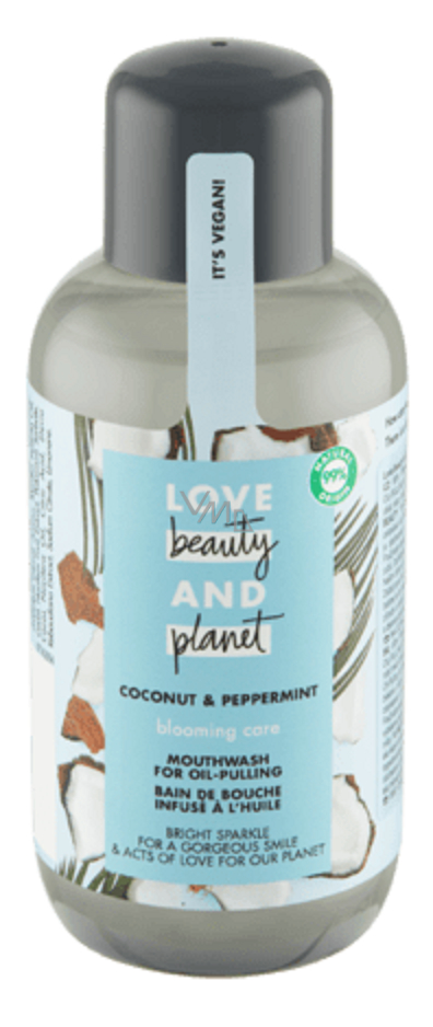 Love Beauty and Planet ústní voda s kokosovým olejem, mátou a pečlivě sestaveným složením z rostlinných složek jako je přírodní kokosový olej, jejichž inspirací pro vznik byl starodávný ájurvédský rituál krásy zahrnující převalování oleje v ústech, se používal pro detoxikaci úst a osvěžení dechu. Složení ústní vody s kokosovým olejem a mentolem neobsahuje alkohol ani žádná umělá sladidla či barviva a pomůže vám předcházet vzniku zubního plaku. Používejte ji společně s naší zubní pastou Blooming Whitening a zvýrazněte tak bělost svých zubů a zářivě oslnivý úsměv.