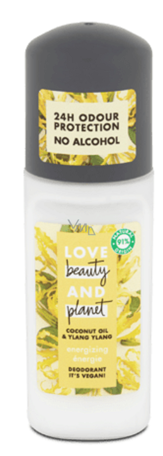Love Beauty and Planet kuličkový deodorant Energizing s kokosovým olejem a ylang-ylang zajistí vašemu podpaží 24 hodinovou ochranu proti zápachu. Deodoranty jsou obohacené o panenský kokosový olej, který je známý svými vyživujícími účinky, zatímco květ ylang ylang naplní vaše rána svěžestí. Veganský deodorant? Žádný problém. S 24 hodinovou ochranou Vám zaručí, že budete vonět celý den. A nejenže naše deodoranty jsou bez alkoholu a netestované na zvířatech, ale také naše nádoby jsou vyrobené z 100% recyklovaných materiálů. My Love Beauty and Planet® věříme, že každý z nás může malými skutky lásky přispět ke změně na naší planetě. Proto jsme se zavázali například k tomu, že budeme do našich vůní používat esenciální oleje nebo esence z etických zdrojů, včetně našich deodorantů.