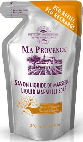 MA PROVENCE® Pravé tekuté mýdlo Marseille s esencí pomerančových květů. Od pradávna pomeranč udivoval svou vůní. Mýdlo je vyhledáváno pro své přírodní vlastnosti a čistotu. Jeho stimulační vlastnosti jsou známy již od Antiky. Šetrný pro citlivou a křehkou pleť. Používá se od starověku na svatební korunky, Orange Blossom odhaluje měkké a sladké tóny které jsou vhodné pro citlivou a křehkou pokožku.