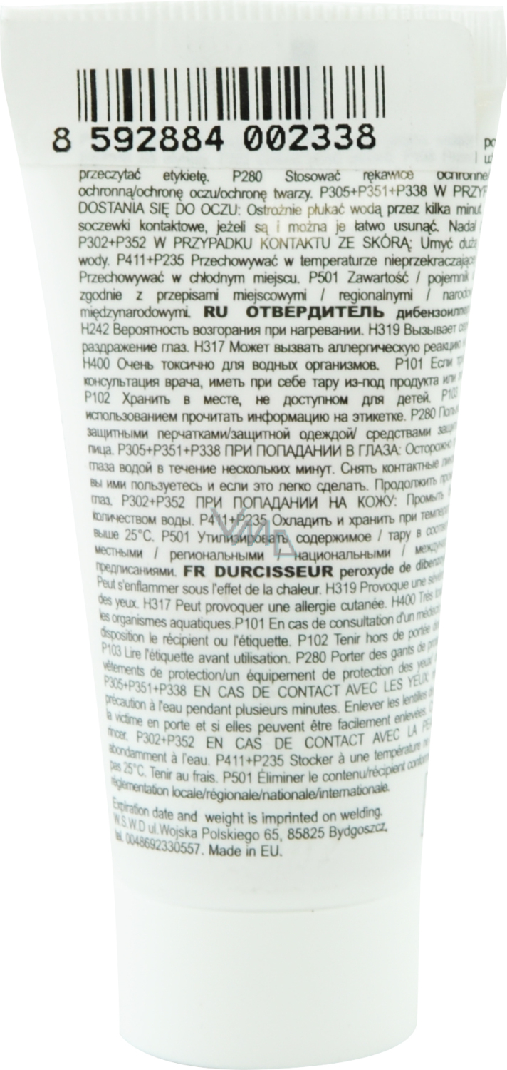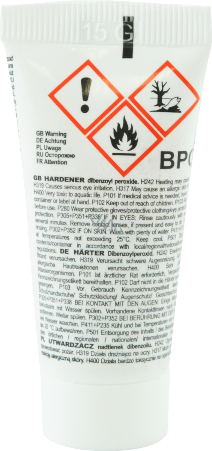 DBPO pasta - czerwona PE inicjator - utwardzacz do mas poliestrowych. Inicjator reakcji do utwardzania mas poliestrowych. Utwardzacz do mas poliestrowych, utwardzacz do akrylowych wypełniaczy, utwardzacz do lakierów, utwardzacz do farb akrylowych.