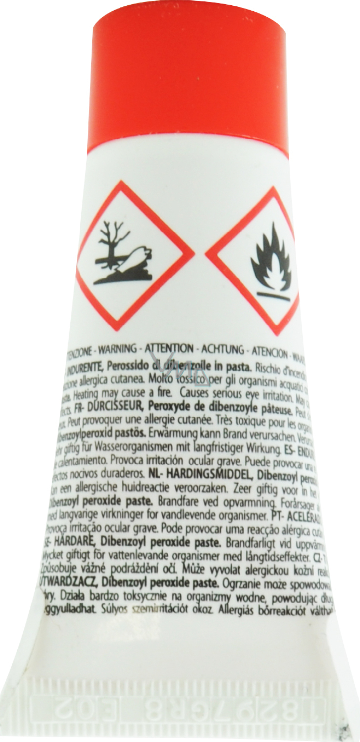 DBPO pasta - czerwona PE inicjator - utwardzacz do tynków poliestrowych. Inicjator reakcji do utwardzania tynków poliestrowych. Utwardzacz do tynków poliestrowych, utwardzacz do akrylowych wypełniaczy, utwardzacz do lakieru bezbarwnego, utwardzacz do kolorów akrylowych.