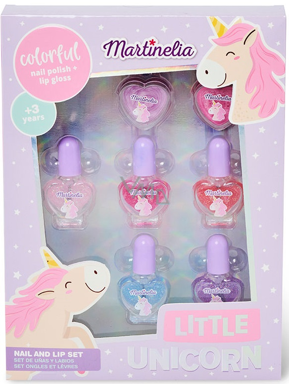 Martinelia Little Unicorn lesk na rty 2 x 2,5 g + lak na nehty 5 x 3,6 ml, kosmetická sada pro děti