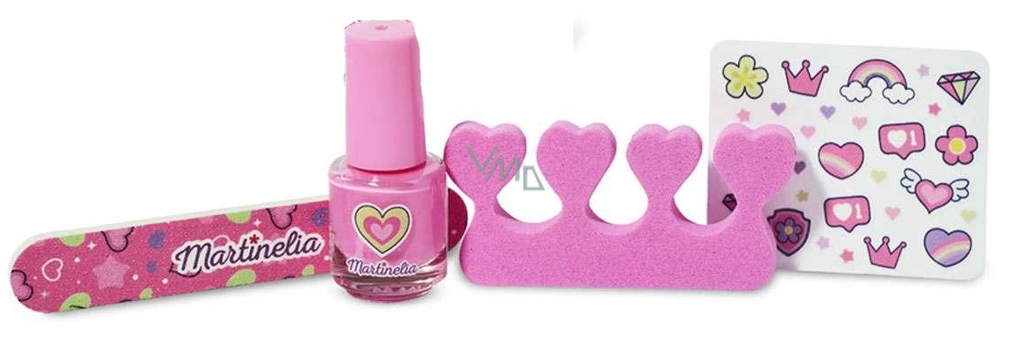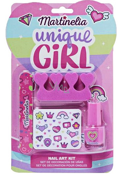 Martinelia Unique Girl lak na nehty 4 ml + pilník na nehty + samolepky na nehty + oddělovač prstů, kosmetická sada pro děti