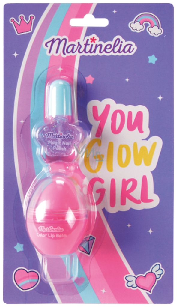 Martinelia You Glow Girl barevný balzám na rty 4,5 g + lak na nehty 2 ml, kosmetická sada pro děti