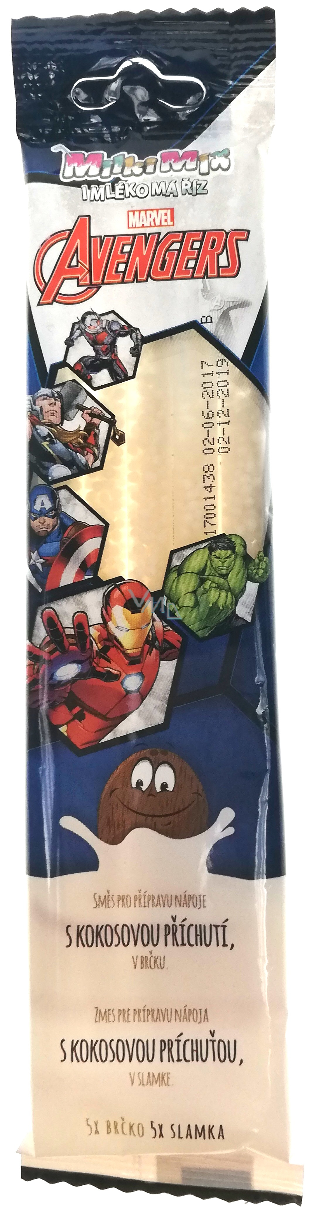 Marvel Avengers MilkiMix mléčné brčko směs pro přípravu nápoje s příchutí kokosu 5 brček po 30 g