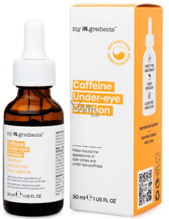 Tento roztok na odstranění otoků pod očima obsahuje kofein – antioxidant a diuretikum, které snižuje výskyt tmavých kruhů pod očima a oteklé pokožky prostřednictvím dočasného zúžení kapilár. Toto složení je také podpořeno epigallocatechin gallátem, antioxidantem s protizánětlivými vlastnostmi, který pomáhá zklidnit oteklou pokožku. Kofein se dobře snoubí s kyselinou hyaluronovou, aby se zabránilo vysoušení a podporuje vzhled orosené pokožky.