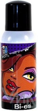 Deodorant sprej s oblíbeným motivem panenek Monster High. Monster High je škola pro monstra. Studují tam legendární monstra jako třeba zombie, vlkodlaci, upíři, duchové, mumie, roboti atd. Učitelé jsou také monstra. Jejich oblečení a styl se moc nemění od lidí, jen jsou trochu divočejší. Učí se lektvary, vědu, matematiku, jazyky, tělocvik a mnoho dalších.