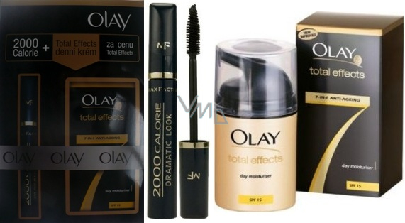 Max Factor 2000 Calorie Dramatic Volume řasenka 01 Black 9 ml + Olay Total Effects 7-in-1 denní krém, kosmetická sada