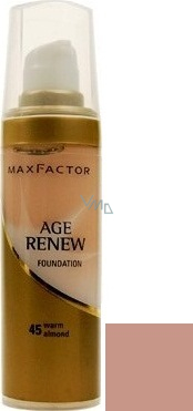 Pomocí revoluční technologie přináší Max Factor řešení určené zralé pleti. Age Renew je ve své kategorii špičkový přípravek, díky němuž bude naše pokožka okamžitě vypadat mladší nejméně o pět let. Přípravek s revolučním složením obsahuje nejen částečky propouštějící světlo, ale vytváří s jejich pomocí efekt teplého odstínu. Mimoto obsahuje i pečlivě vyvinutý komplex přípravků péče o pokožku, jaký u make-upu určeného zralé pleti vyžadujeme. Díky tomuto složení ztrácí pokožka vystavená jakýmkoliv světelným podmínkám na unaveném vzhledu a zároveň je jí věnováno kvalitní vyživující a regenerační ošetření.
