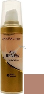 Pomocí revoluční technologie přináší Max Factor řešení určené zralé pleti. Age Renew je ve své kategorii špičkový přípravek, díky němuž bude naše pokožka okamžitě vypadat mladší nejméně o pět let. Přípravek s revolučním složením obsahuje nejen částečky propouštějící světlo, ale vytváří s jejich pomocí efekt teplého odstínu. Mimoto obsahuje i pečlivě vyvinutý komplex přípravků péče o pokožku, jaký u make-upu určeného zralé pleti vyžadujeme. Díky tomuto složení ztrácí pokožka vystavená jakýmkoliv světelným podmínkám na unaveném vzhledu a zároveň je jí věnováno kvalitní vyživující a regenerační ošetření.