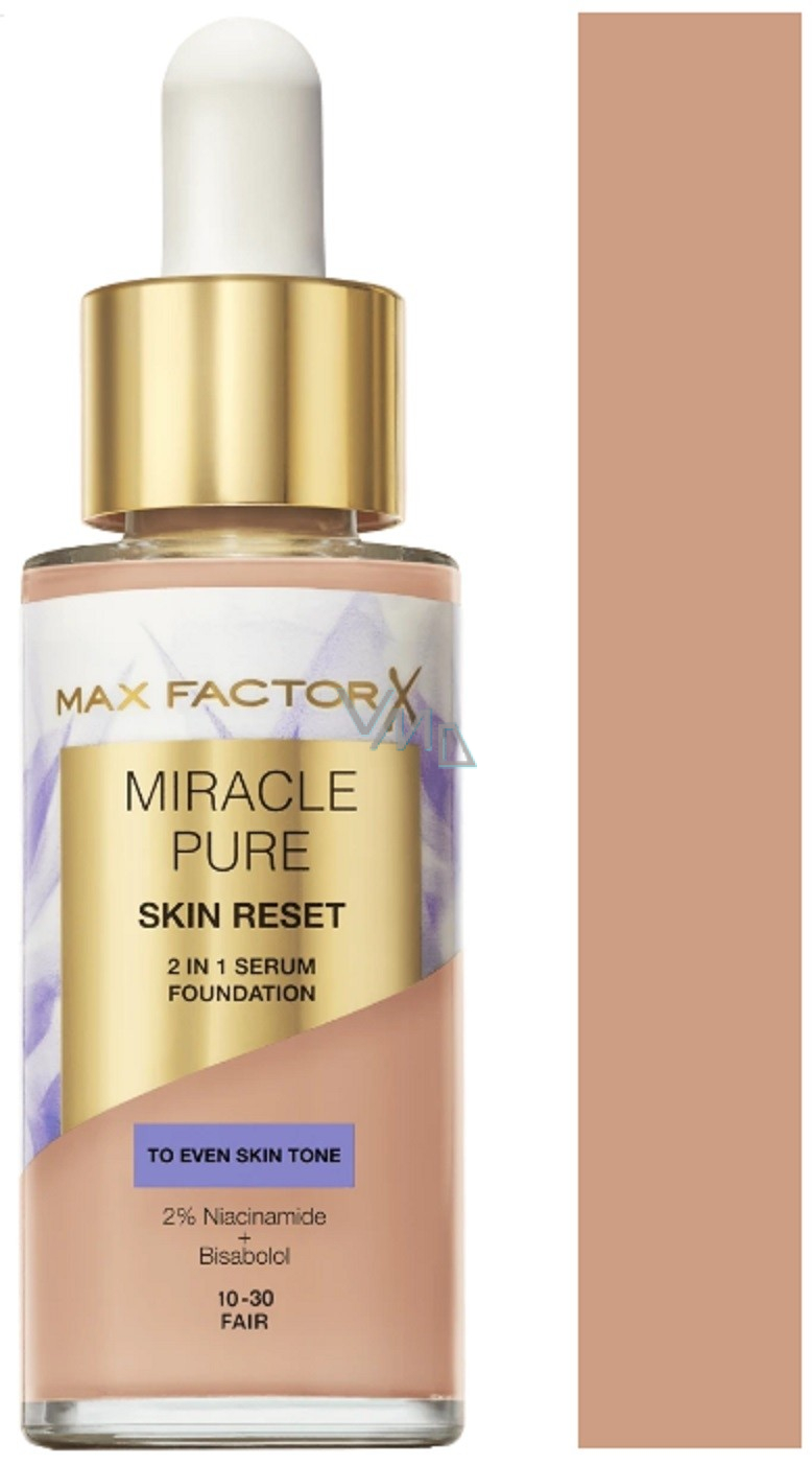 Make-up a sérum 2v1 Miracle Pure poskytuje dokonalé krytí pleti a zároveň ji i regeneruje. Jeho lehká textura, která kombinuje sílu pečujícího séra se středním krytím make-upu, dodává pleti rovnoměrný, saténově matný finiš. Pečující složení obsahující niacinamid, bisabolol a výtažek z heřmánku redukuje tmavé skvrny a nerovnoměrný tón pleti a zajišťuje sjednocený a jasnější vzhled. Dopřejte si bezchybný a přirozený vzhled s tímto make-upem.