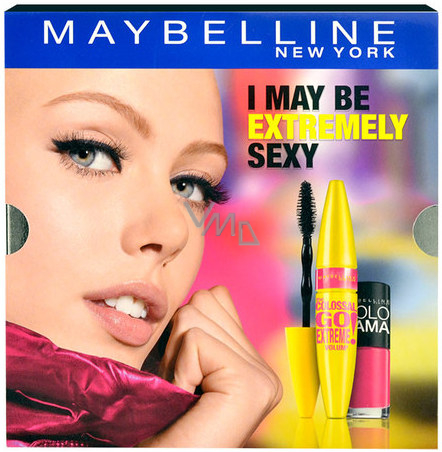 Maybelline Colossal Go Extreme! Volum Very řasenka Black 9,5 ml + Colorama lak na nehty 006 7 ml, kosmetická sada