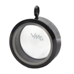Stylový „memory“ medailon z nerezové oceli černý, Ø 30 mm (tl. 11 mm) s průhlednými okénky a bezpečným otočným (závitovým) uzávěrem. Elegantní černá povrchová úprava podtrhne kamínky, korálky či drobné šarmy, které si do medailonu vložíte.