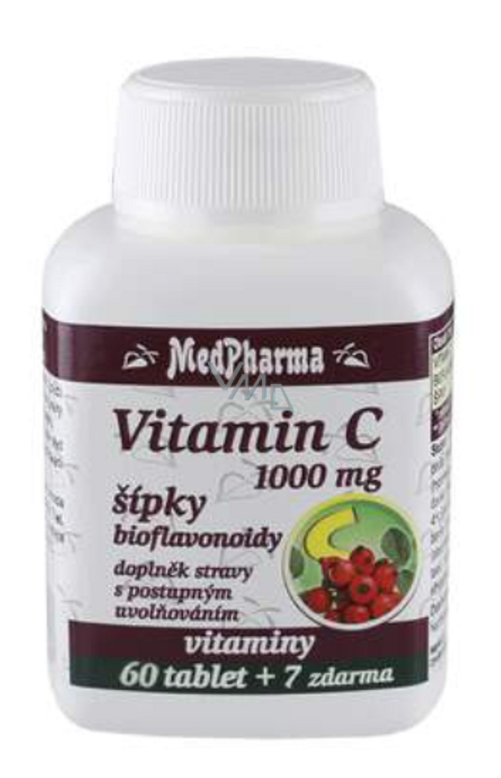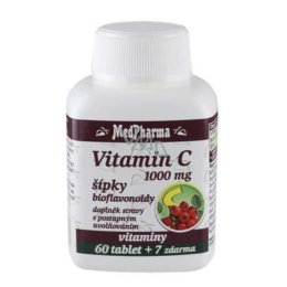 Medpharma Witamina C 1000 mg z bioflawonoidami to suplement diety zawierający witaminę C w postaci tabletek o przedłużonym uwalnianiu. Witamina C jest substancją łatwo rozpuszczalną w wodzie, co powoduje jej wypłukiwanie z organizmu w krótkim czasie. Zastosowanie tabletek w postaci przedłużonego uwalniania prowadzi do efektywnego wchłaniania witaminy C do organizmu. Bioflawonoidy z owoców cytrusowych zwiększają działanie witaminy C. Przyczynia się do prawidłowego funkcjonowania układu odpornościowego, do zmniejszenia uczucia zmęczenia i znużenia oraz do prawidłowej produkcji kolagenu.