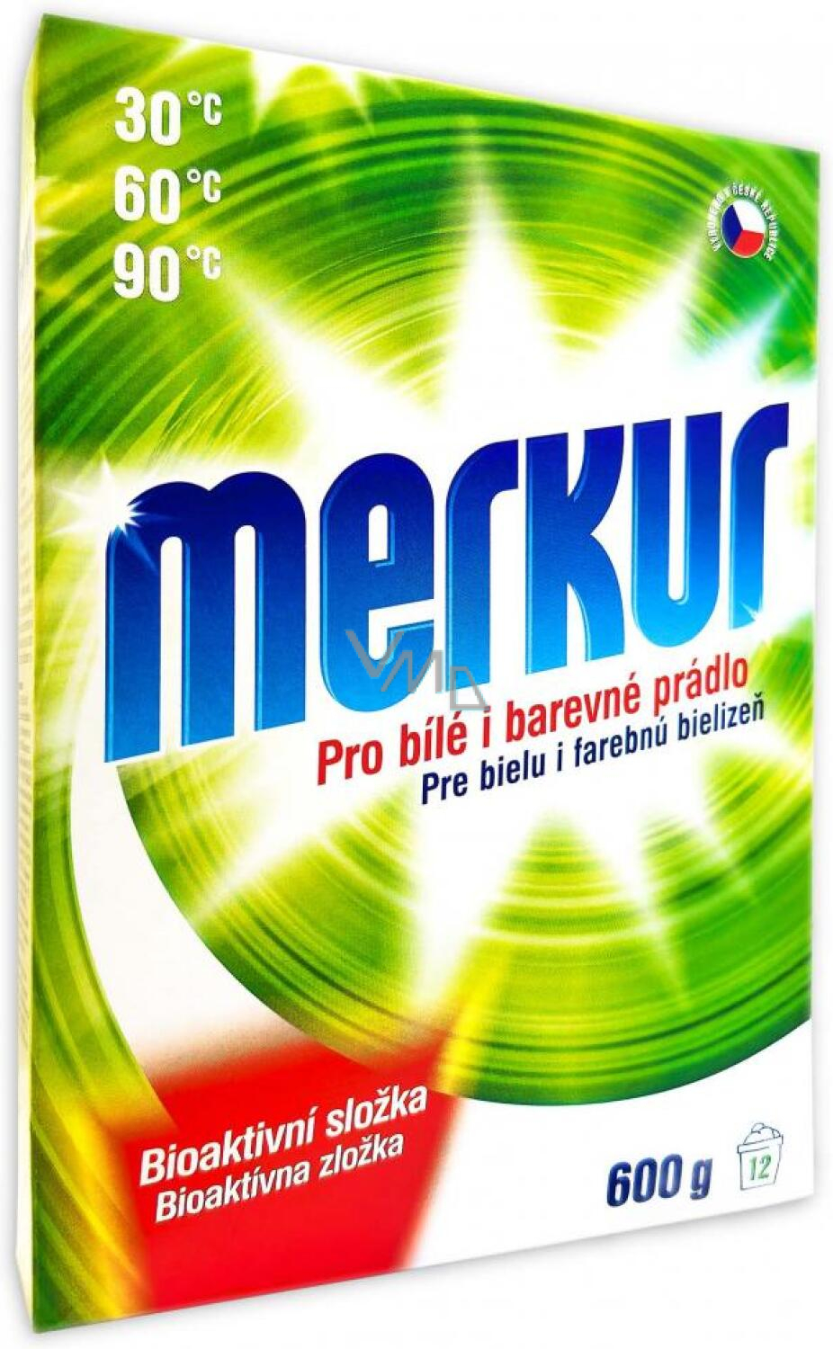 Opis Merkur pro bílé i barevné prádlo, univerzální prací prášek, 600 g