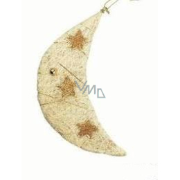 Vánoční věnce patří k symbolům vánočních svátků a adventu. Pro adventní dobu jsou charakteristické adventní věnce a svícny, které jsou připomínkou narození Pána. Podle staré liturgie, vycházející ze čtyř adventních nedělí, by se každý týden měla na věnci zapálit jedna svíčka. Zapálené světlo je tak tou správnou dobou pro rozjímání. Podle staré tradice by v domácnosti měly být věnce dva. Jeden, který vítá hosty a je zavěšen na domovních dveřích a druhý, který dotváří atmosféru domova a podtrhuje nevšednost přicházejících dnů. Věnec by rozhodně neměl chybět, jako vánoční dekorace v každém obydlí.Závěs sisalový s glitr.hvězdičkami MĚSÍC 21cm