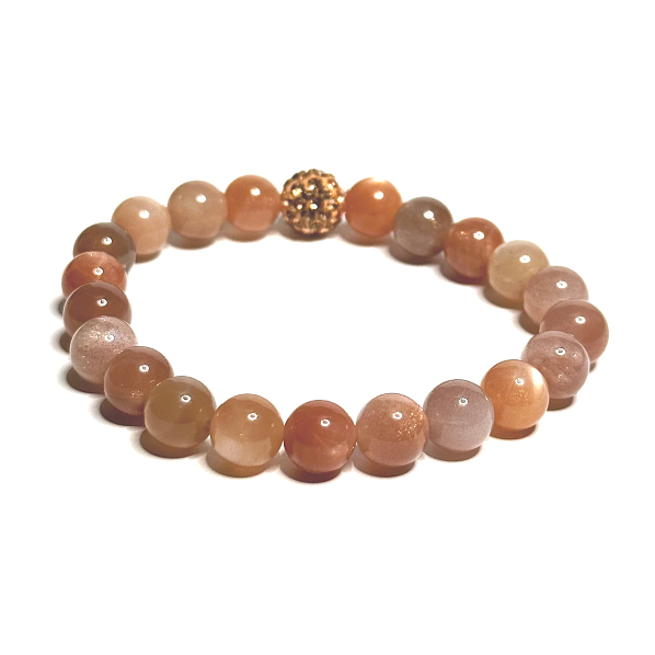 Měsíční kámen alias měsíček. Kámen je unikátní svým jemným kolébavým třpytem, který se zintenzivňuje správnou orientací kamene při vybroušení. Oranžový měsíček se pyšní krásným perleťovým leskem. Pochází z Indie.