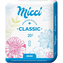 Damskie wkładki Micci Classic są wkładkami higienicznymi anatomicznie ukształtowanymi do codziennych potrzeb.