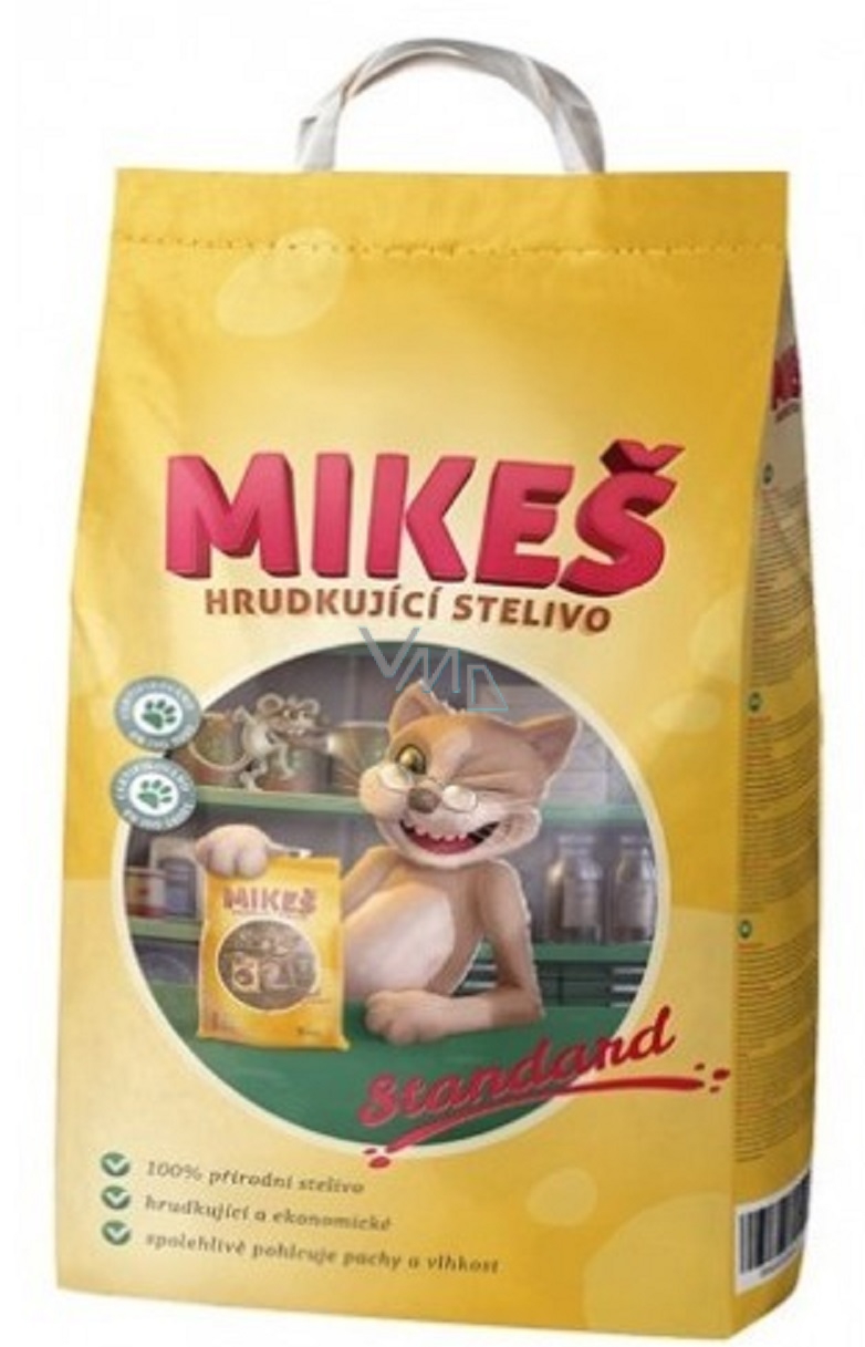 Mikeš Standard je ekonomicky výhodný výrobek, který ulehčuje péči chovatele o svého zvířecího miláčka. Stelivo vytváří pro kočky naprosto přirozené prostředí, pohlcuje pachy a vlhkost a celkově zvyšuje hygienu chovu zvířat.