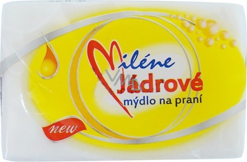 Miléne jádrové mýdlo na ruční praní. Účinně odstraňuje skvrny a špínu.