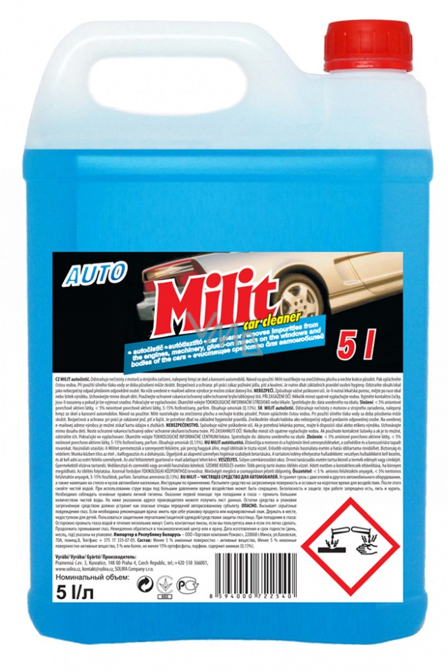 Milit autočistič odstraňuje nečistoty z motorů a strojního zařízení, nalepený hmyz ze skel a karoserií automobilů.