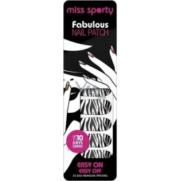 Miss Sporty nálepky na nehty Fabulous jsou horkou novinkou tohoto léta. Užijte si zábavu a snadnou aplikaci. Vybrat si můžete z více vzorů. Jedno balení obsahuje celkem 10 samolepících nálepek v různých formátech. Tyto samolepky jsou na jedno použití.