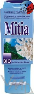 Zklidňující tělové mléko Mitia je díky speciálně vybraným ingrediencím a inovativnímu složení tou nejlepší péčí o Vaši pokožku. Obsahuje panthenol se zklidňujícími a regeneračními účinky a zvláčňující výtažky BIO mořské řasy.