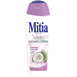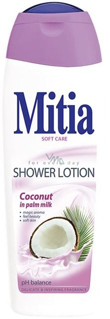 Mitia sprchové mléko Coconut in palm milk, je ta nejlepší péče o Vaši pokožku. Jemné krémové složení společně s výtažky z kokosu, které přispívají ke zvláčnění a hydrataci pokožky, a extraktem z palmového mléka se zjemňujícími účinky, ji pomáhá zachovat hebkou a vláčnou.