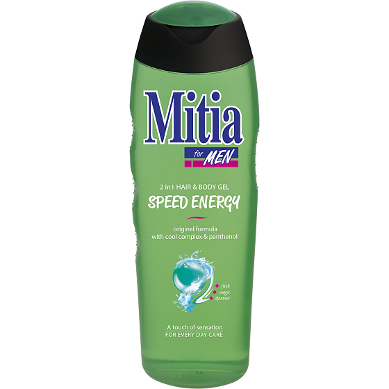 MITIA Speed Energy 2 w 1 żel pod prysznic i szampon dla mężczyzn, to codzienne uczucie maksymalnej świeżości i czystości. Zawiera specjalny „cool complex” z chłodzącym działaniem, ekstraktami z rozmarynu i mięty. Dzięki świeżemu zapachowi i bogatej pianie, kąpiel staje się prawdziwą przyjemnością.