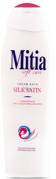 Mitia pěna do koupele Silk Satin, to je ta nejlepší péče o Vaši pokožku. Jemné krémové složení společně s Extraktem z Kokosového Mléka, který pokožku vyživuje a zvláčňuje, a hedvábnými Proteiny s hydratačními účinky ji pomáhají zachovat hebkou a vláčnou.