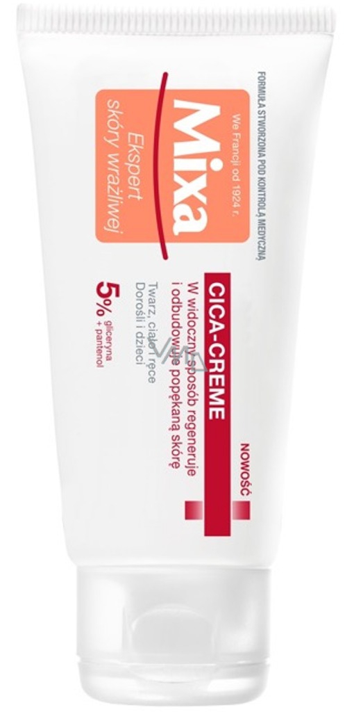 S Mixou i citlivá pleť má právo na účinnou péči. Síla aktivních ingrediencí s ohledem na pleť. Suchá pokožka celé rodiny může každý den trpět podrážděním: šupinky, olupování, drsnost či jiné nepříjemné pocity. Cica-Creme s táhlou pečující texturou je obohacený o panthenol, složku známou svými regeneračními vlastnostmi, zklidňuje pokožku na oslabených a citlivých partiích obličeje a těla pro rychlé hojení a obnovu pleti.