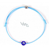 Niebieskie oko bransoletka sznurkowa tkana jasnoniebieska, komponent w kolorze brązowym