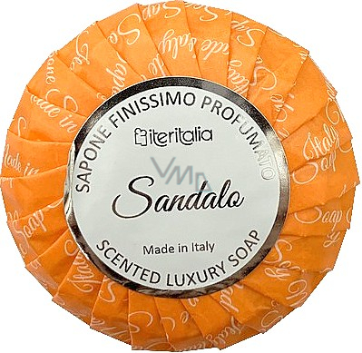 Italské mýdlo nejvyšší kvality, třikrát mletá. Hladší, krémovitější s bohatou pěnou. Dárkově balené mýdlo s vůní santalového dřeva.
