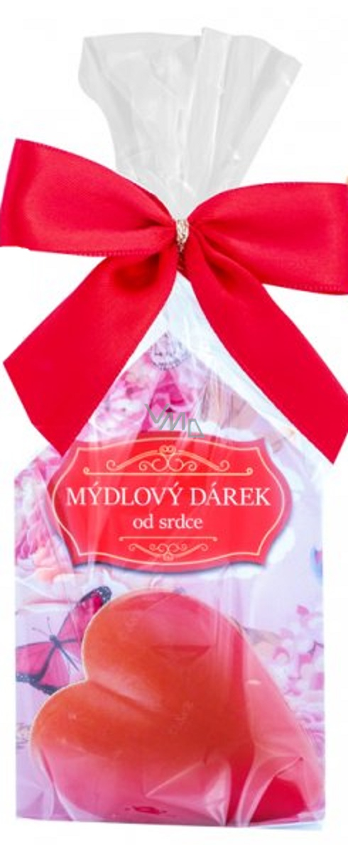 Tvarované toaletní mýdlo ve tvaru roztomilého srdíčka s vůní třešně, ukryté v dárkovém celofánu, bude krásnou a voňavou drobností k Valentýnu nebo narozeninám. Dárkové mýdlo nejvyšší kvality pro každou pokožku.