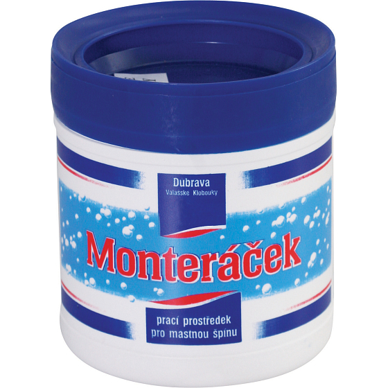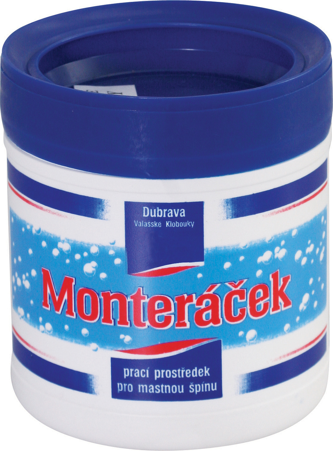Monteráček jest skuteczną pastą do prania na tłuste plamy. Bez wywarzania wypierze tkaniny, które są zanieczyszczone tłuszczami i olejami, takie jak kombinezony, fartuchy robocze, ściereczki itp. Sprawdzony pastowaty środek do prania do silnie zanieczyszczonego materiału. Skuteczna pasta do prania na tłuste plamy. Bez wywarzania wypierze tkaniny zanieczyszczone tłuszczami i olejami – kombinezony, fartuchy robocze, ściereczki itp. także do użycia w pralkach.
