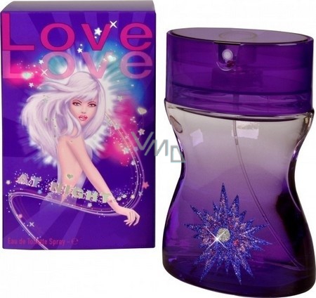 At Night od značky Love Love je květinově - ovocná vůně pro ženy. Staňte se královnou noci a užijte si chvíle plné svůdných kouzel, které vám tato vůně s lehkým nádechem orientu, uschovaná ve fialovém flakonu, pomůže vyčarovat.