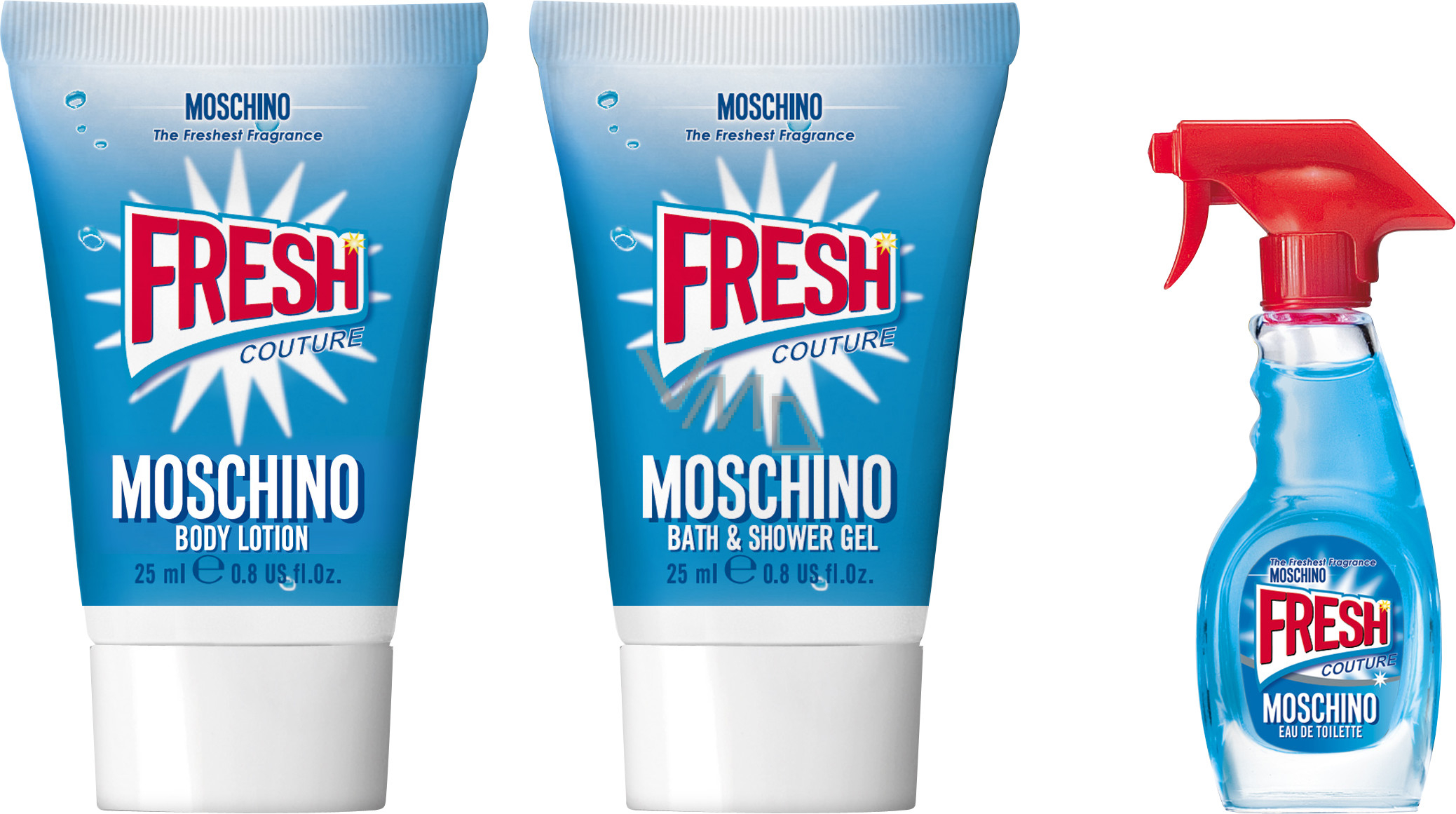 Moschino Fresh Couture toaletní voda 5 ml + sprchový gel 25 ml + tělové mléko 25 ml, dárková sada