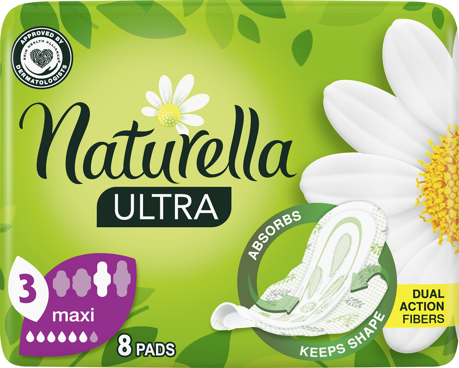 Wkładki Naturella z przyjemnym zapachem rumianku i perłami chłonnymi.