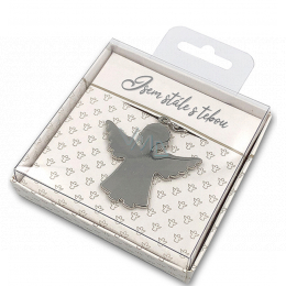 Nádherná kovová klíčenka ve tvaru anděla s lesklým povrchem jistě vykouzlí úsměv na tváři každému. Na krabičce je napsáno věnování, klíčenka je bez popisu.