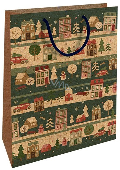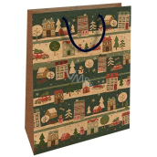 Nekupto Dárková kraftová taška 37 x 28 x 10 cm Vánoční domečky, autíčko