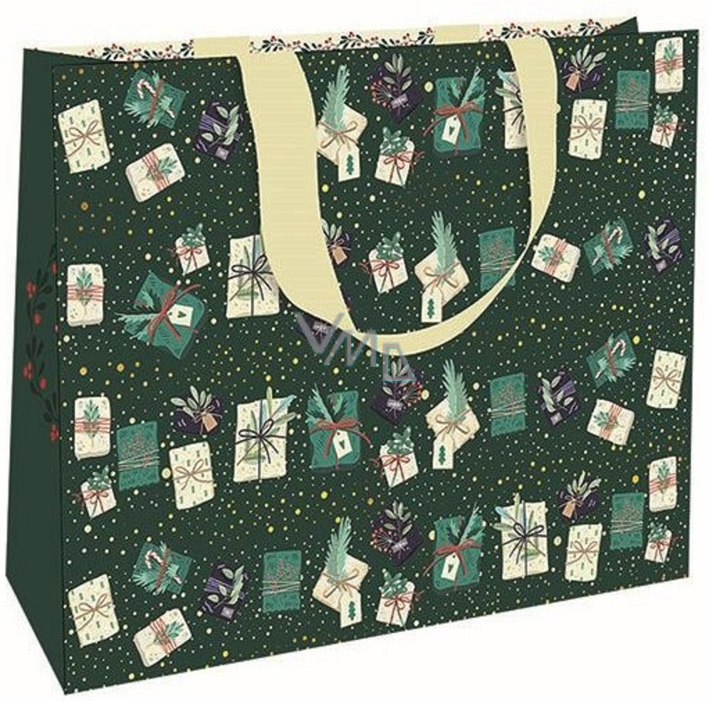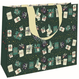 Nekupto Dárková papírová taška s ražbou 30 x 23 x 12 cm Vánoční dárečky zelené