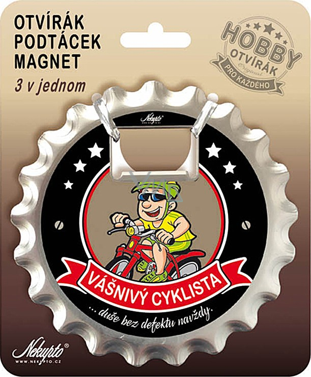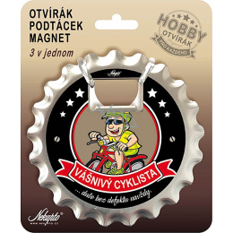 Nekupto Hobby 3v1 otvírák, podtácek, magnet Vášnivý cyklista 10 cm