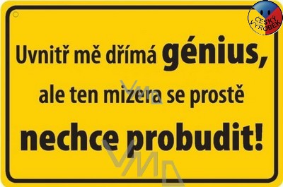 Nekupto humorná cedulka Uvnitř mě dřímá génius
