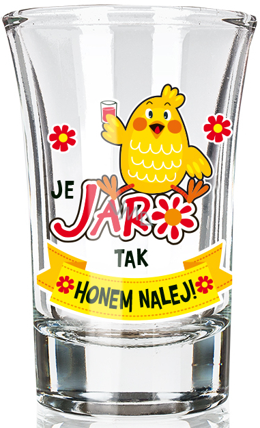 Humorný panák z kvalitního skla s odolným potiskem. Baleno v papírové krabičce.