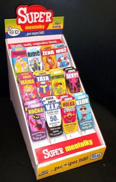Super vtipné mentolky, jsou krásným dárkem, který potěší všechny generace. Dražé s příchutí mentolu se sladidly.